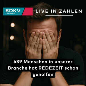 Seit 2023 bietet der BDKV gemeinsam mit REDEZEIT FÜR DICH #virtualsupporttalks ein besonderes Angebot: niedrigschwellig, professionell, kostenfrei, anonym, telefonisch. Geschulte Zuhörer*innen – von Coaches bis Therapeut*innen – zeigen einen Ausweg bei beruflichem Stress, persönlichen Konflikten oder einfach dann, wenn’s zu viel wird.